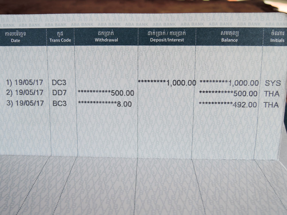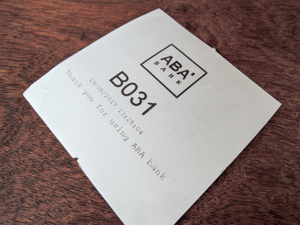 ATMではキャッシュカードを試しますが、預金の引き出しは問題なくできますし、暗証番号の変更もできます。ただし、ATMには欠点があり預入ができないのです。ABA銀行のATMは引き出し機能があっても預入ができないのです。これはABA銀行だけではなくカンボジアのATMが預入非対応のようです。ドルとリエルの2通貨に対応している優れものでも預け入れ非対応というのは残念です。数年後には預入対応ATMが登場しても不思議はないと思いますが、それまでは面倒ですが銀行の窓口に出向いて預金しなければなりませんね。