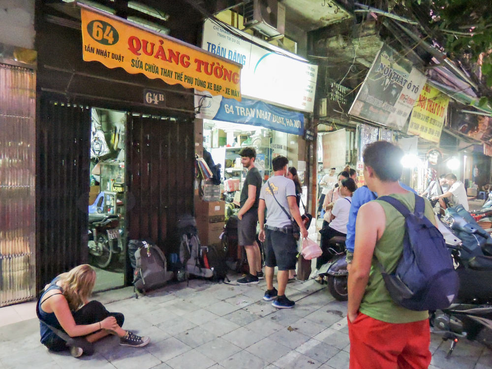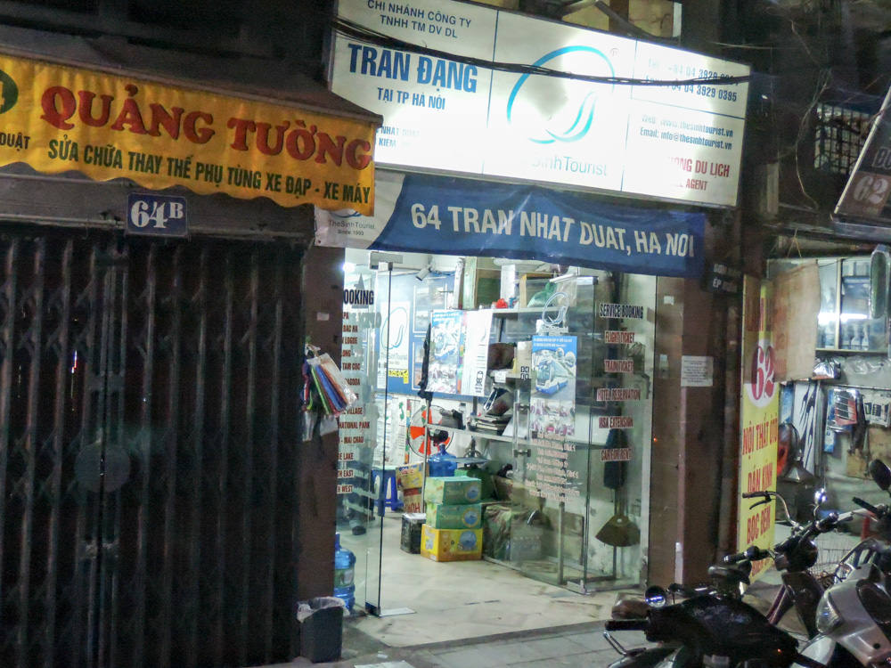 17:30、シンツーリスト・ハノイ オフィス1にやってきました。寝台バスでベトナムの首都ハノイ(Ha Noi)から中部の古都フエ(Hue)へ移動します。既に狭い店舗内は人が多いです。