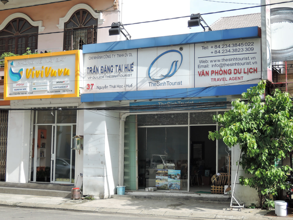 フエには1泊だけして次のホイアンへ向かいます。シンツーリストの店舗で残りのオープンバスチケットの日程を埋めておきます。ホステルから徒歩3分ほどの所にシンツーリスト・フエ オフィスがありますので道に迷わずに到着、08:00のホイアン行きのバスが出た後で空いている時間帯なので待ち時間無しでスタッフのお姉さんにバスの予約をお願いします。