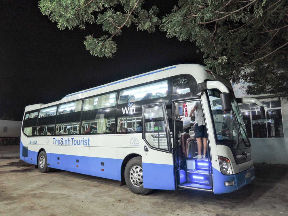 18:05、乗客全員が集まり予定より早くバスがホイアンを出発します。シートは9割ぐらい埋まっている様子です。明朝にはニャチャンに到着の予定です。