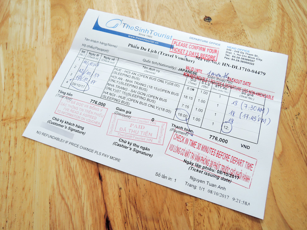 ベトナム縦断ができましたのでシンツーリストで明日のカンボジア行きバスチケットを購入して次は国際バスで国境越えです。