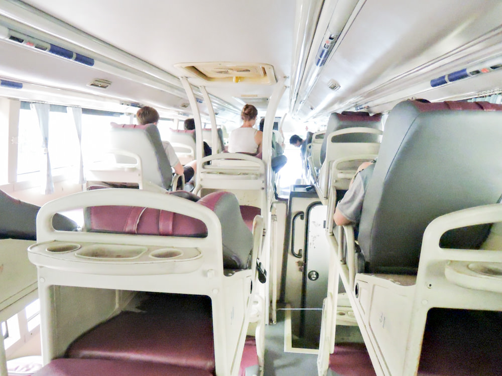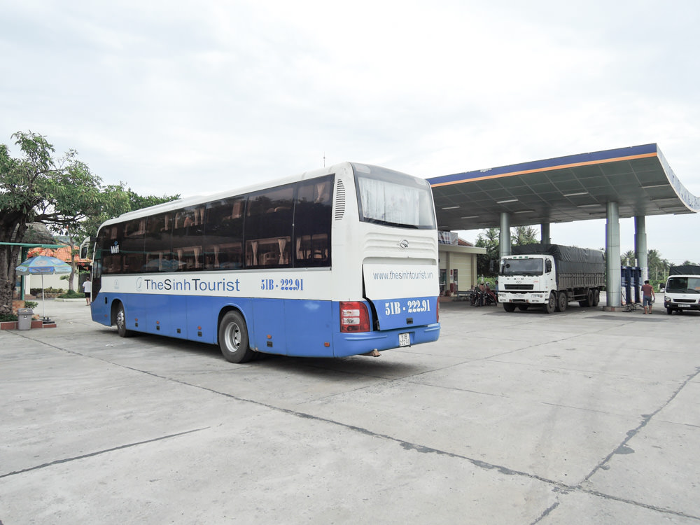 バスは定刻通りにニャチャン(Nha Trang)を出発して途中ムイネー(Mui Ne)を経由してホーチミン(Ho Chi Minh)へ向かいます。今回のバスは今までのバスとは違い塗装がはがれており格段に古いです。乗客は思いの外少なく38シートのうちで11シートが埋まっているだけです。ニャチャンがロシア人のリゾート地として人気なので乗客は欧米人がほとんどなのですがロシア人が多いですね。